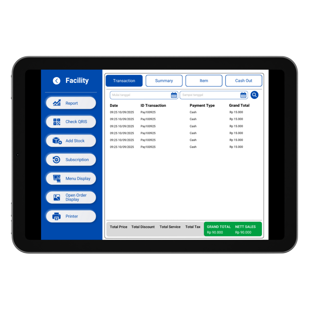 Dapatkan insight bisnis Anda melalui laporan otomatis yang detail dan mudah dipahami. Laporan penjualan harian, mingguan, bulanan Analisis menu terlaris dan jam ramai Export laporan ke Excel atau PDF.